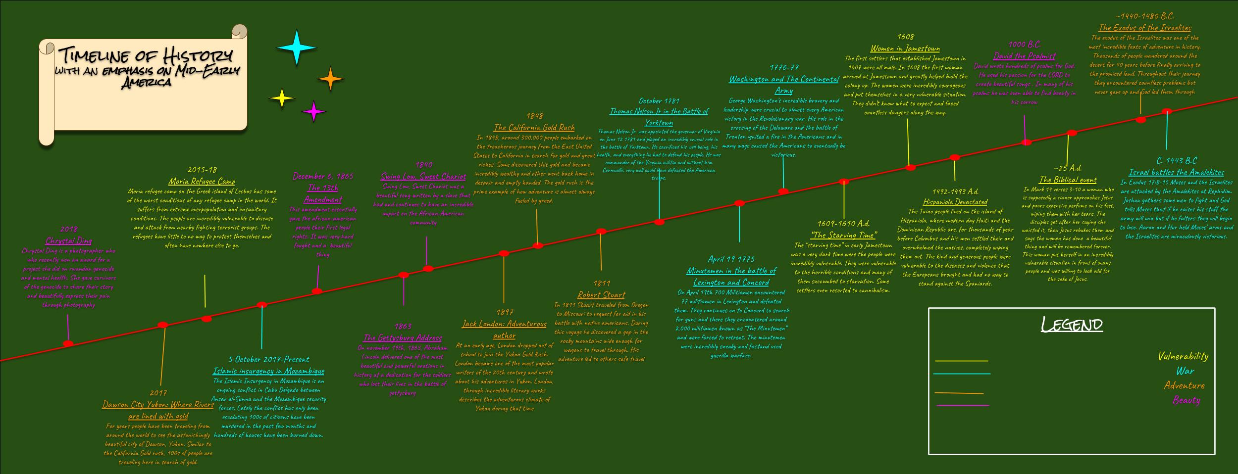 America through the American Civil War, to biblical and modern-day (so as to illustrate how thematic patterns repeat themselves (Eccles 1:9) and, - complete an annotated bibliography on four topics of choice, each topic specific to an era in American history. For each topic, students were to gather five credible sources (a combination of both primary and secondary). Therefore, their final bibliography was to contain 20 sources, each critically analyzed and summarized.